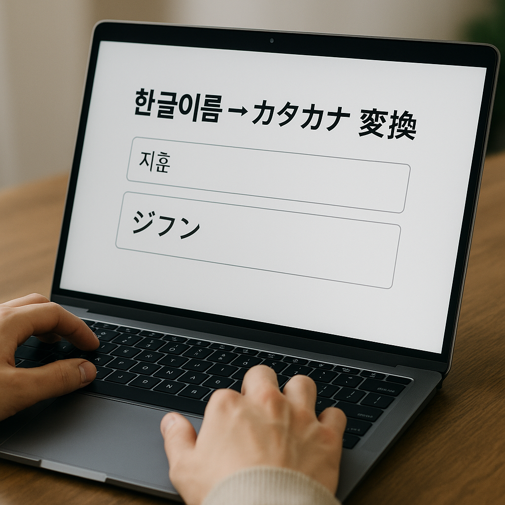 직접 하나하나 표기를 익히는 방법도 있겠지만… 솔직히 말해서, 그럴 시간 없을 때는? 그냥 도구 쓰면 됩니다. 아래 사이트를 이용하면 한글 이름 입력 → 자동 가타카나 변환 됩니다.