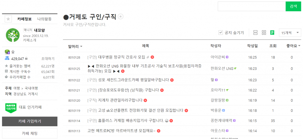 구인구직 뿐만 아니라 중고거래, 관광, 낚시 등 다양한 정보가 올라옵니다. 많은 사람들이 가입하는 이유는 이런 정보들을 찾기 위해서일 것입니다.