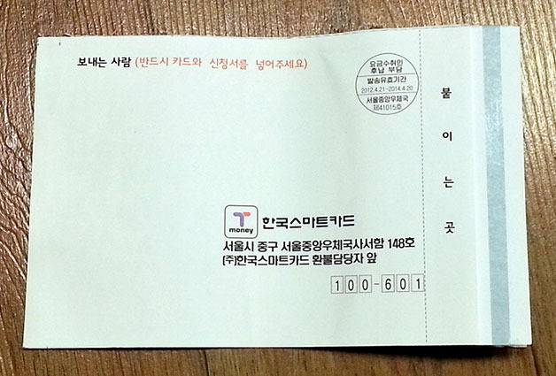그럼 고장난것은 어떻게 해야할까요? 이게 환불 봉투라는게 있더라고요.. 편의점 가면 환불봉투같은게 있다고 합니다.(직접 해보진 않음) 여기에다가 카드 넣고 우체통에 넣으면 된다고 합니다.