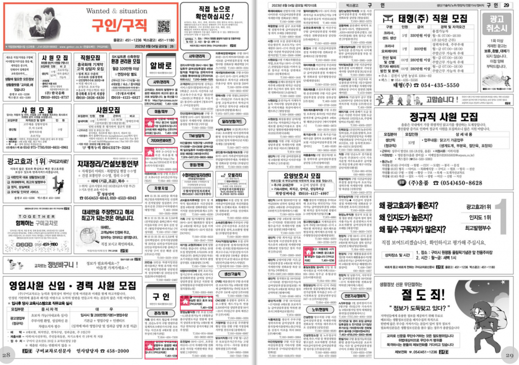 생활정보신문에 나와있는 구인구직 공고는 지역 거주자에게 초점이 맞춰져 있기 때문에 더 효율적일 수 있습니다. 구미교차로 e구인구직 사이트 역시 이러한 분류에 속합니다.