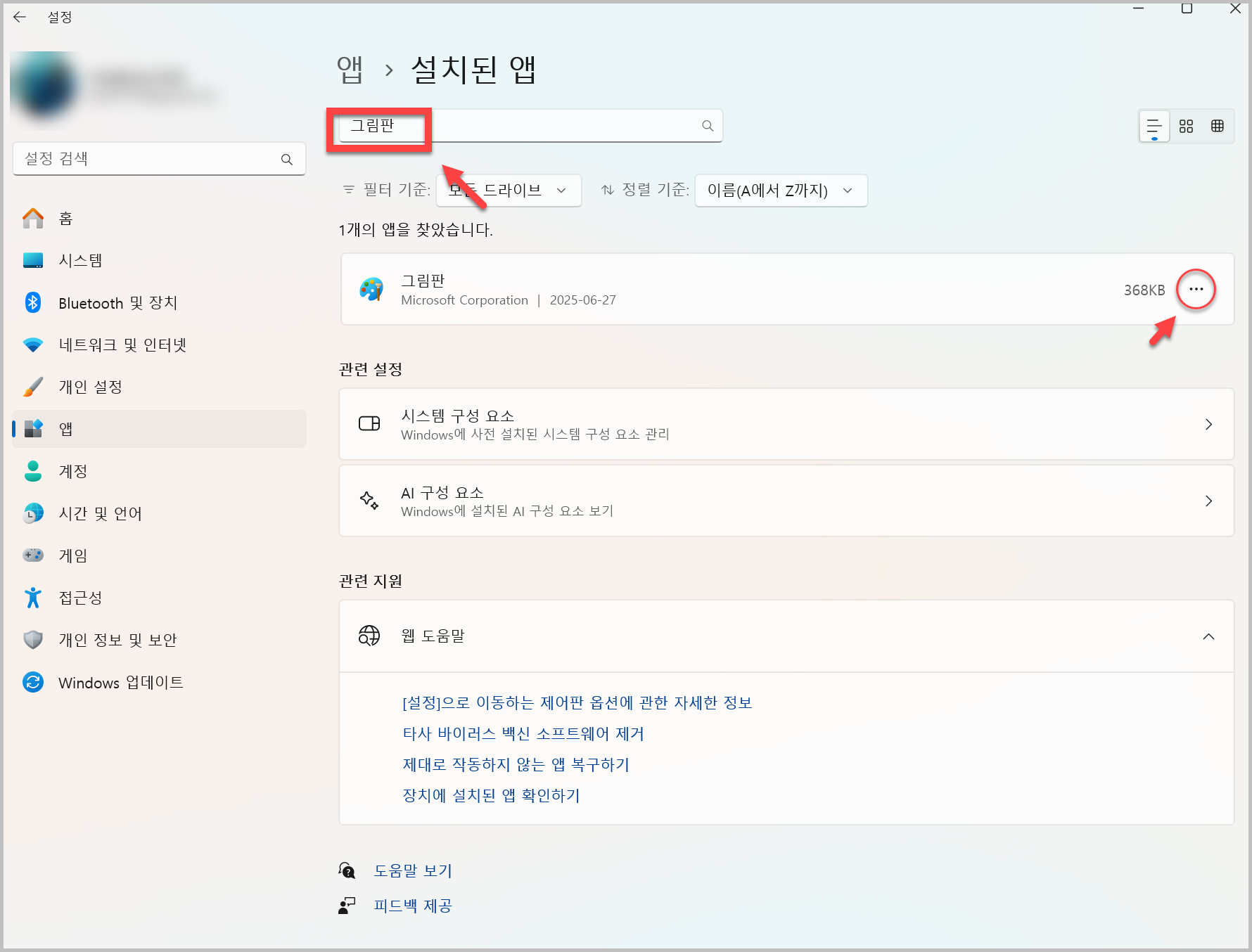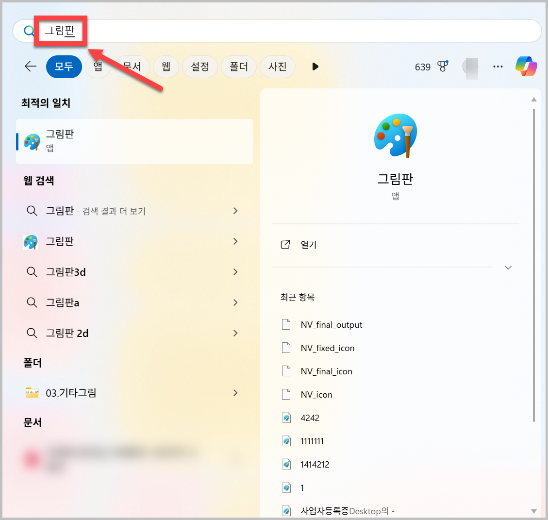 한글로 입력하면 잘 안찾아지고 영어로 Paint라고 입력하면 잘 찾아집니따.