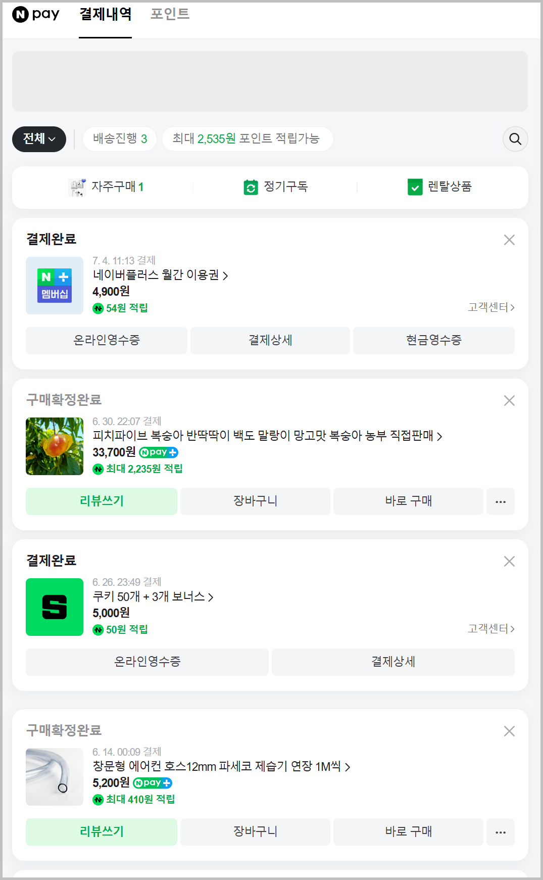 이곳에서는 주문번호 이런것들을 체크할수도 있고, 관련된 문의를 한번에 모아서 볼수 있기 떄문에 편리합니다. 네이버. 요즘 생각에는 이게 검색엔진이나 포털이라기 보다는 하나의 거대한 쇼핑몰 처럼 느껴집니다.