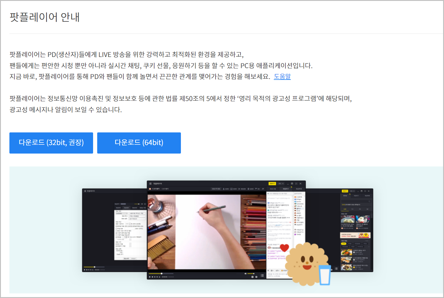 이게 그나마 개인적으로는 쓸만했습니다. 다음이라는 대형 포털에서 제공하고 있는 프로그램이고, 카카오TV와 연동이 되기 때문에 당분간 망할일도 없어보입니다. 홈페이지 들어가면 이런화면이 나옵니다.
