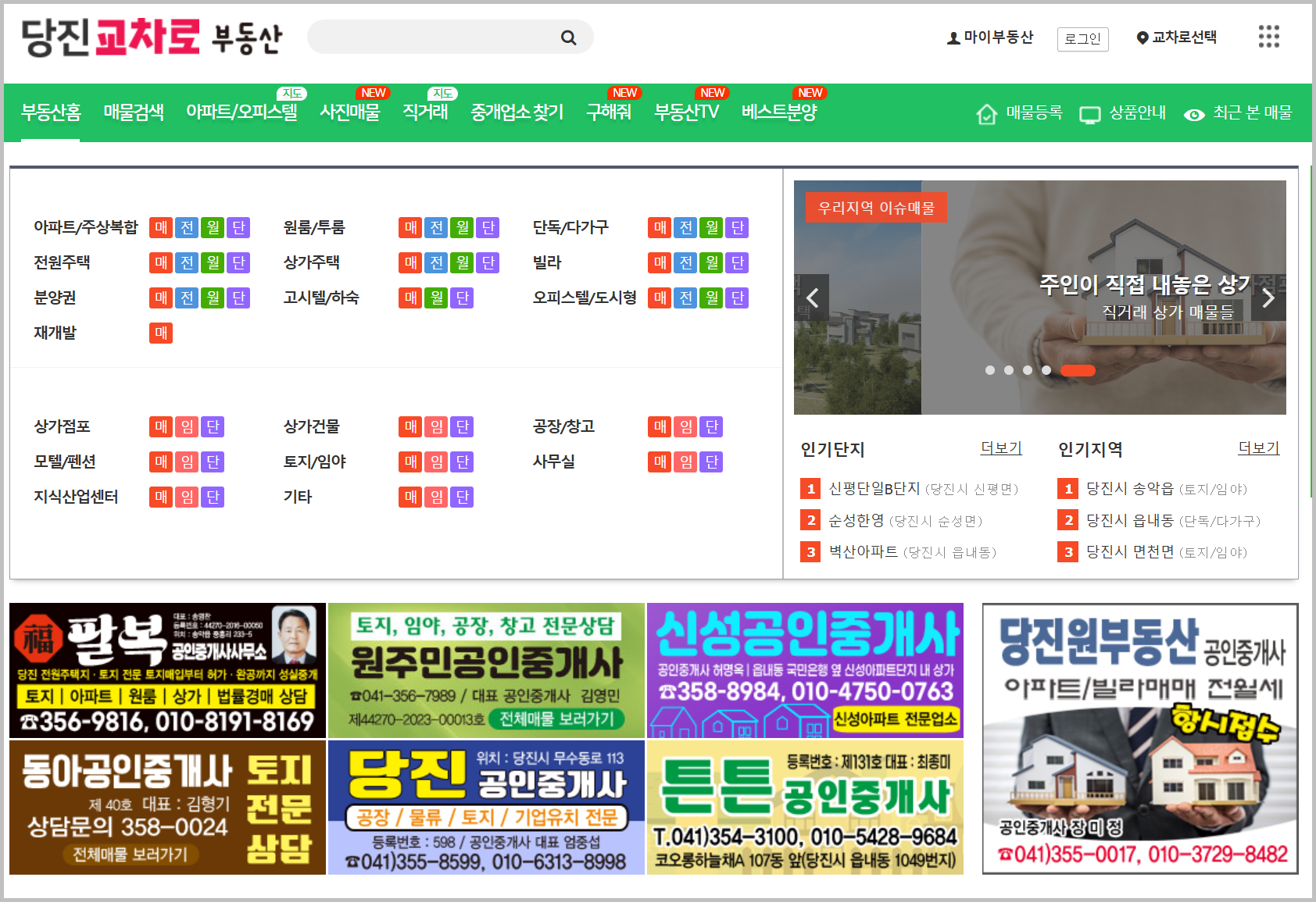 또한 당진교차로부동산 관련 정보도 여전히 제공 중입니다.지도 기반은 아니지만, 매물 종류 중심으로 정리된 전통적인 리스트업 방식으로 정보를 보여줍니다. 최신 UI/UX에는 못 미치지만, 오히려 이 방식을 선호하는 사용자층도 여전히 존재합니다.