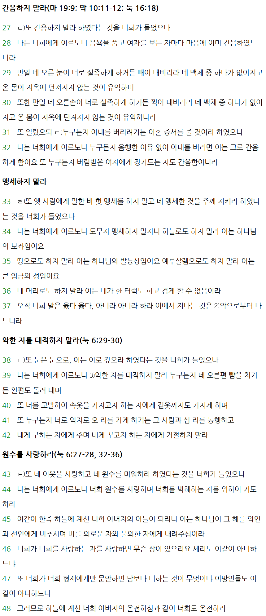 - 맹세하지 말라: 옳다 옳다, 아니라 아니라만 하라.