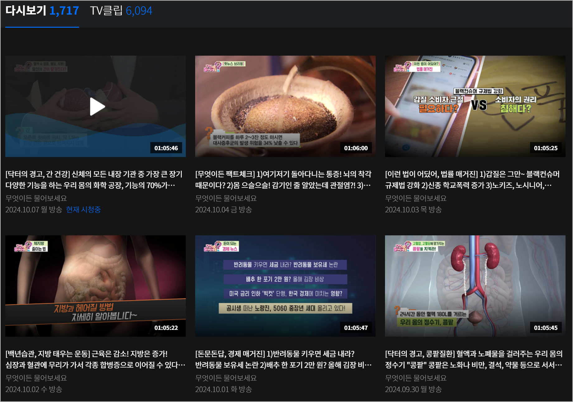 KBS 공식 홈페이지에서는 지난 방송들을 시청할 수 있으며, 오늘 방송분은 보통 오후쯤에 업데이트됩니다. 더 나은 화질을 원하시는 경우, 웨이브에서도 시청할 수 있지만, 별도의 구독료가 필요합니다.