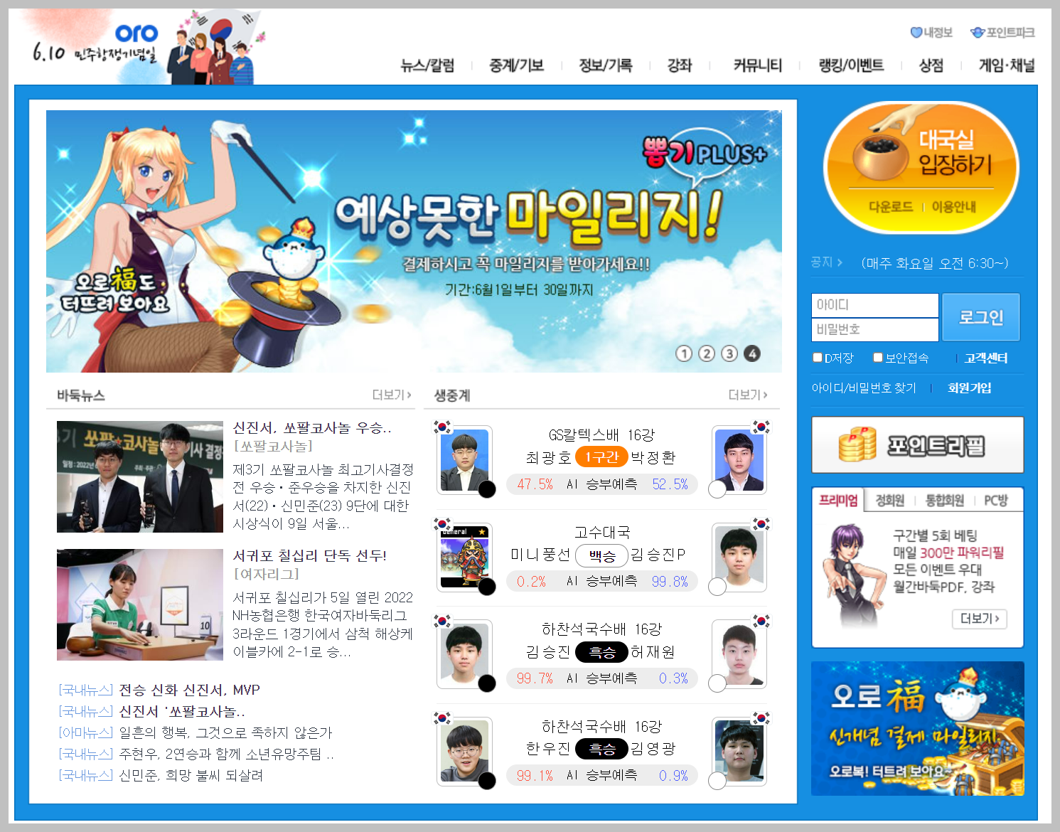 애들때는 다 그렇듯 그것도 한때의 재미였을뿐이고, 여러가지 이벤트, 다양한 즐길거리가 이것을 덮고 또 덮어서, 기억조자 잘나지 않는 시절이 되고 말았습니다. 요즘에 여유가 생겨서 바둑을 다시 공부해보고 있습니다. 사이버 오로바둑이라는 것부터 한번 시작해 봤습니다. 한국기원에서 만든거라니 가장 먼저 해보고 싶었습니다.