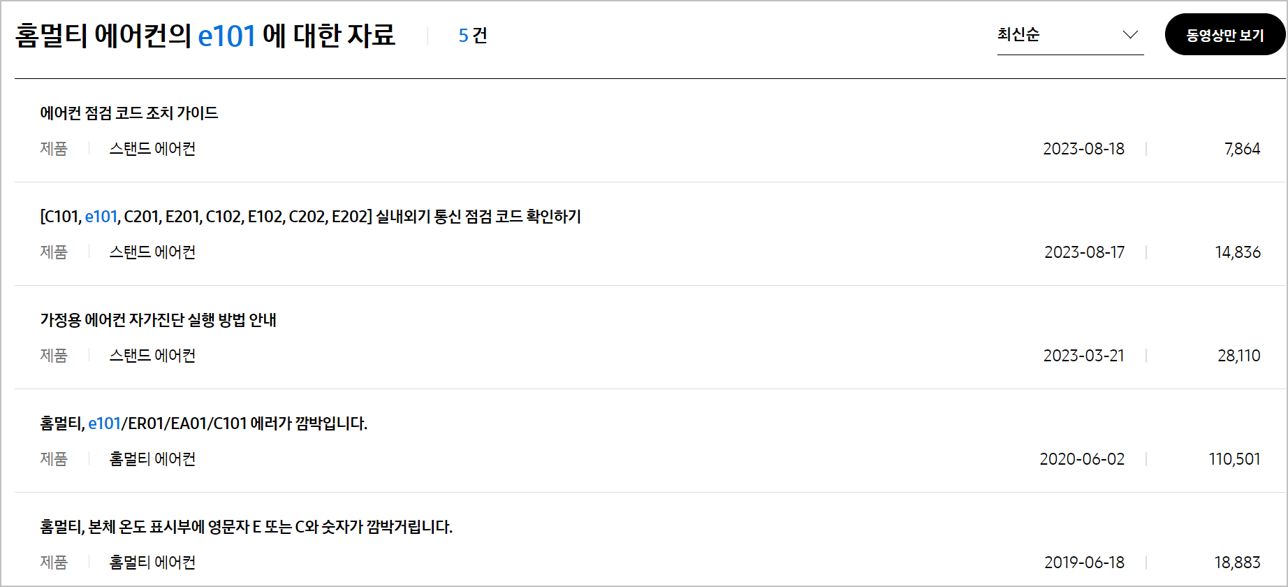 이렇게 E101을 검색하면 위처럼 검색결과가 나옵니다. 이 외에도 진짜 많은 것들을 확인할수 있어요. 괜히 사람불러서 출장비 내지말고 이러한 방식으로 스스로 처리하는 것이 여러모로 좋습니다. 그래도 문제가 해결이 안되면 어쩔수 없이 AS를 불러야 합니다.