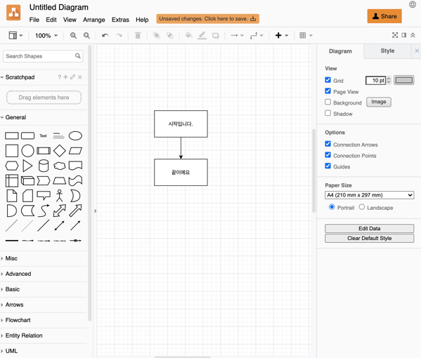 그래서 이번 포스팅에서는 순서도를 그리는 것이 어려운 사람들에게 "draw.io"라는 웹 프로그램을 소개해보도록 하겠습니다. 이 draw.io 을 통해 순서도를 쉽게 그릴 수 있도록 도와줍니다.