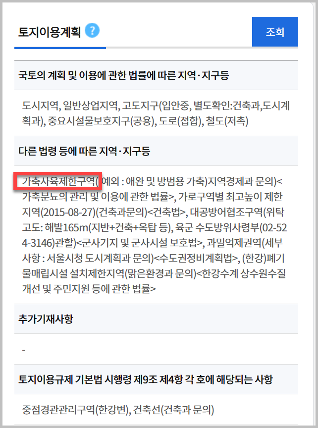 예를들어 어떤 이상한놈이 여의도에 축사를 짓고 싶어합니다. 그런데 이것은 법령제한이 굉장히 많거든요. 그래서 제한 사항이 많은지 체크를 해봐야 합니다. 근데 여의도는 가축사육제한구역이라서 할수가 없습니다. 그래서 축사를 위해서 여의도 땅을 사면안되는것이지요.