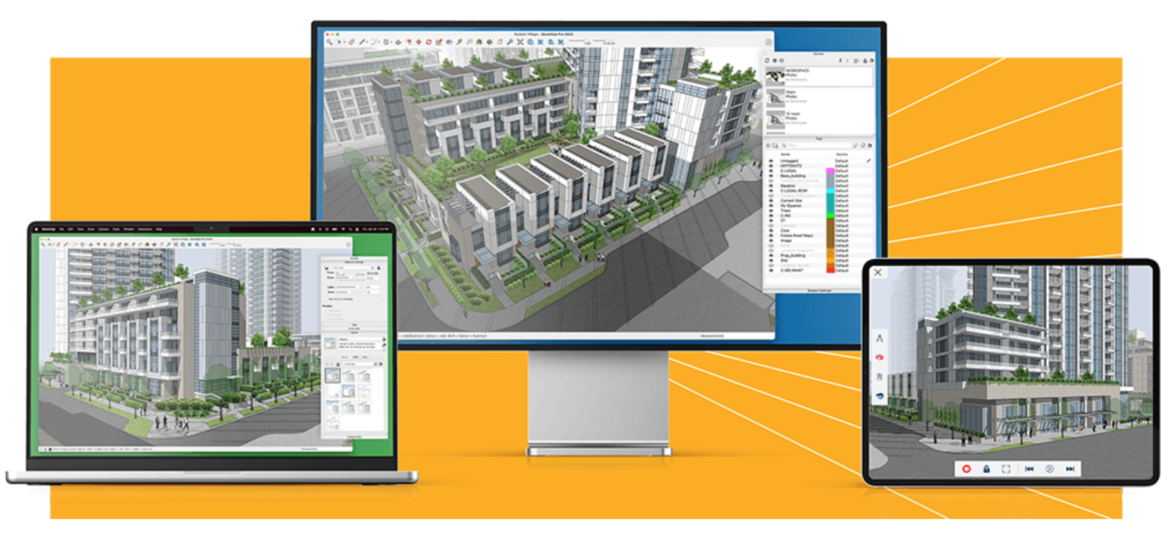 2012년에는 측량 및 건설 분야로 잘 알려진 트림블(Trimble)이 스케치업을 인수하였습니다. 이로 인해 스케치업은 단순한 3D 모델링 툴에서 벗어나, 전문적인 설계 및 건축 도구로 진화하기 시작하였습니다. 이후 2020년을 기점으로 클라우드 기반으로 전환되었으며, 웹 버전도 등장하였습니다. 현재는 패키지 판매 방식이 아닌 구독 기반으로만 제공되고 있습니다.
