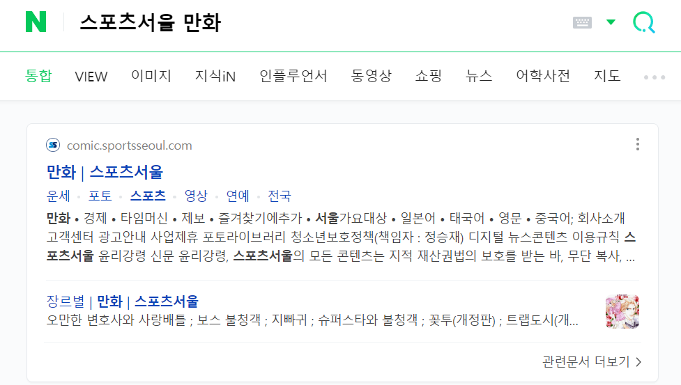 먼저 네이버에서 '스포츠 서울 만화'라고 검색하면 쉽게 찾을 수 있습니다. 또는 아래 링크를 통해 곧바로 접속할 수 있습니다.