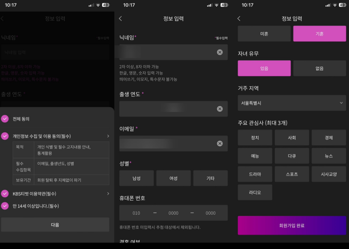 구버전 어플에서는 서비스 가입방법이 굉장히 복잡했습니다. 하지만 최근에는 굉장히 단순해 졌습니다. 저같은 사람도 어렵지 않게 가능하더라구요