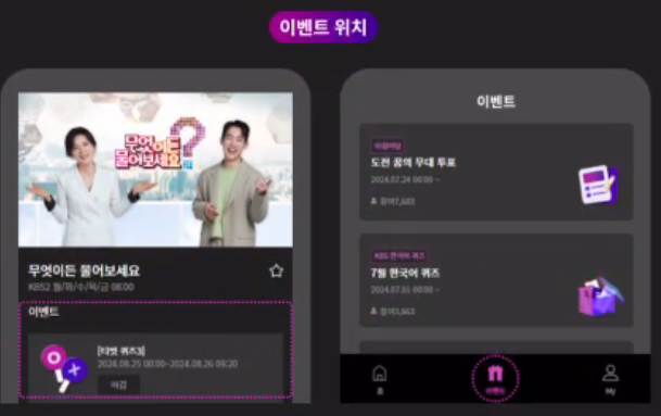 아침마당 퀴즈창 찾는방법