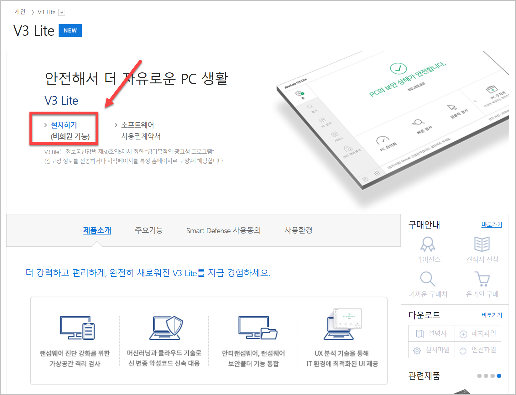 반면에 V3 Lite는 V3보다 가벼운 기능이 포함이 되는 제품으로, 보다 간단하고 쉬운 인터페이스가 특징입니다. V3 Lite는 기본적인 보호 기능이 있으며, 사용자의 사용 습관을 분석하여 최적의 보호 기능을 자동으로 선택하도록 되어 있습니다. V3 Lite는 기본적인 보호가 필요한 일반 사용자들을 위해 제공되며, 보다 경제적인 가격으로 제공됩니다.