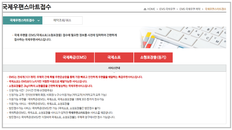 - 국제 소포: 특급보다는 느리지만 경제적인 배송 가능