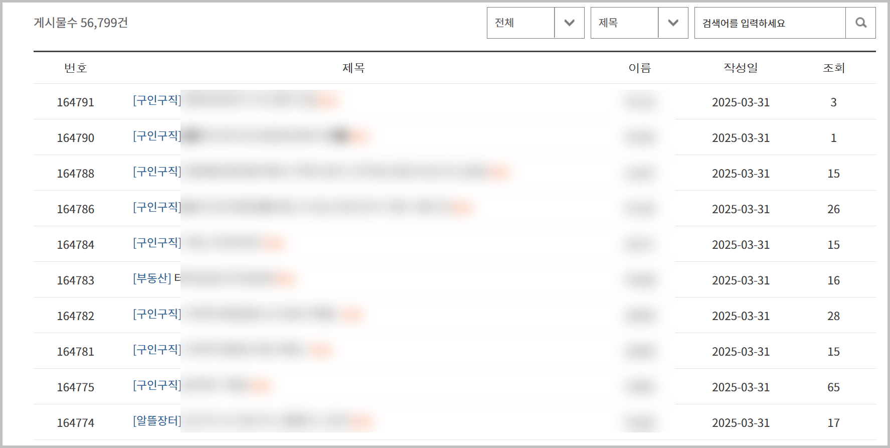 이 중 가장 활발하게 이용되고 있는 곳은 ‘벼룩시장’입니다. 특히 알뜰장터와 구인구직 항목에 게시글이 많이 올라오고 있으며, 부동산거래 항목은 상대적으로 활성화되지 않은 편입니다. 게시판을 보면 관리자가 일정 수준의 관리를 하고 있는 것으로 보이며, 오래된 글은 깔끔하게 정리되어 있는 반면, 여전히 혼란스러운 게시글도 일부 존재합니다.