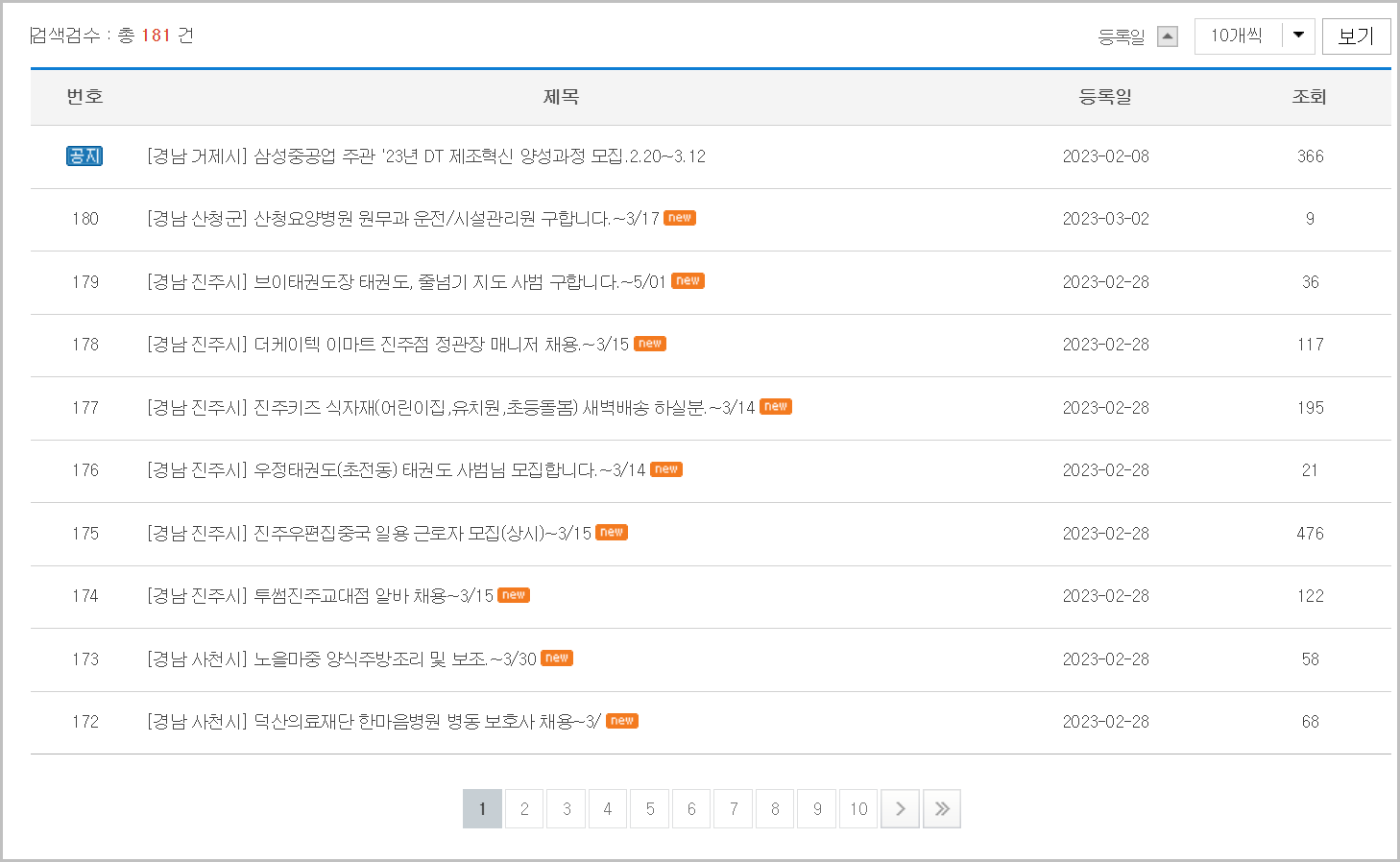 하루에도 이만큼이나 많은 정보들이 올라오고, 현재 남아있는 정보가 181건입니다. 유효하지 않는 정보는 사라지는것으로 보입니다.이렇게 지자체를 활용해서도 일자리 정보를 많이 얻을 수 있습니다. 이외에도 다양한 방법을 통해서 관련된 데이터를 확인할수 있습니다.