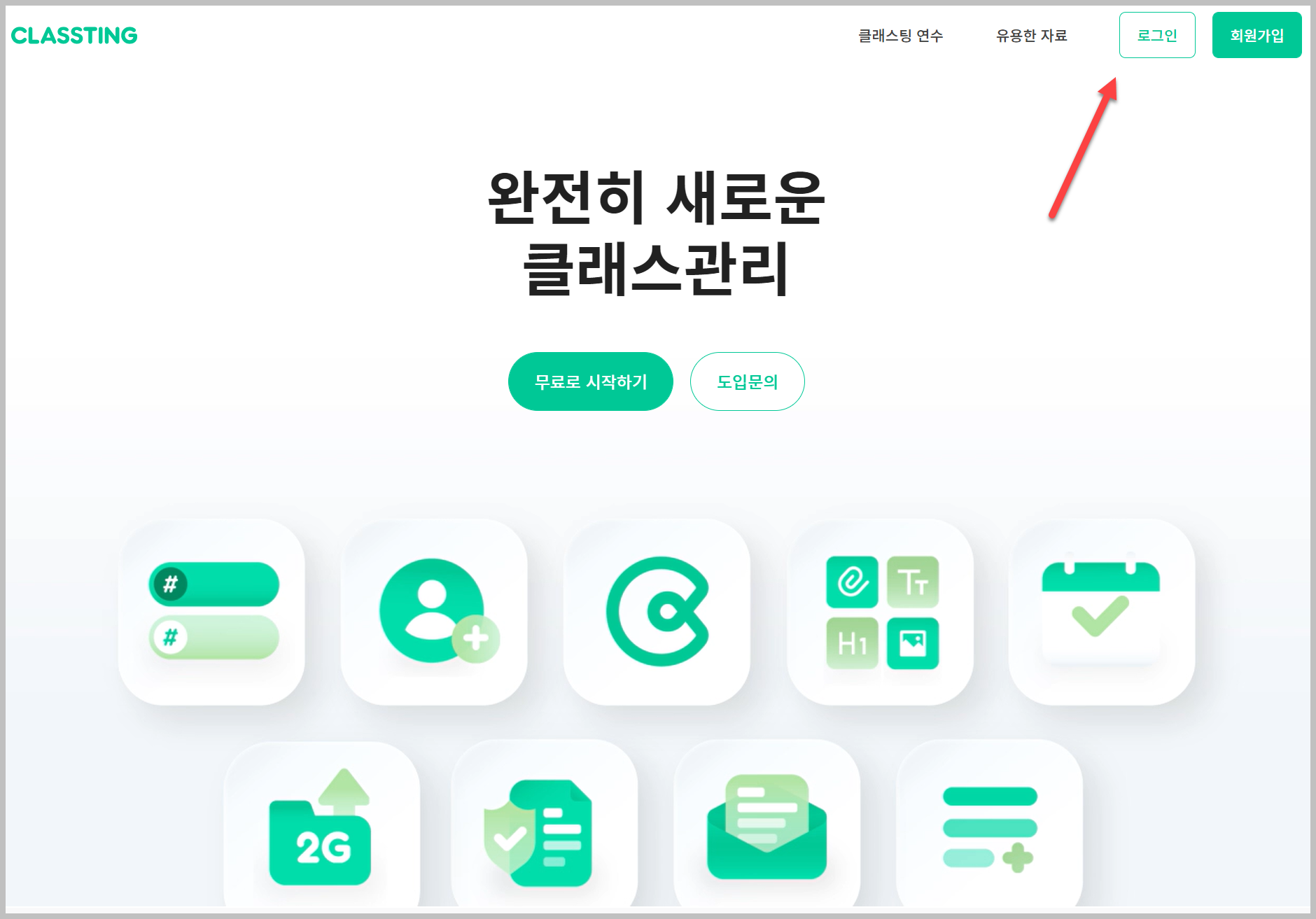 여기로 들어가시면 클래스팅 웹페이지로 들어가실 수 있습니다. 사용하는 방법은 로그인을 하면 되겠지요?