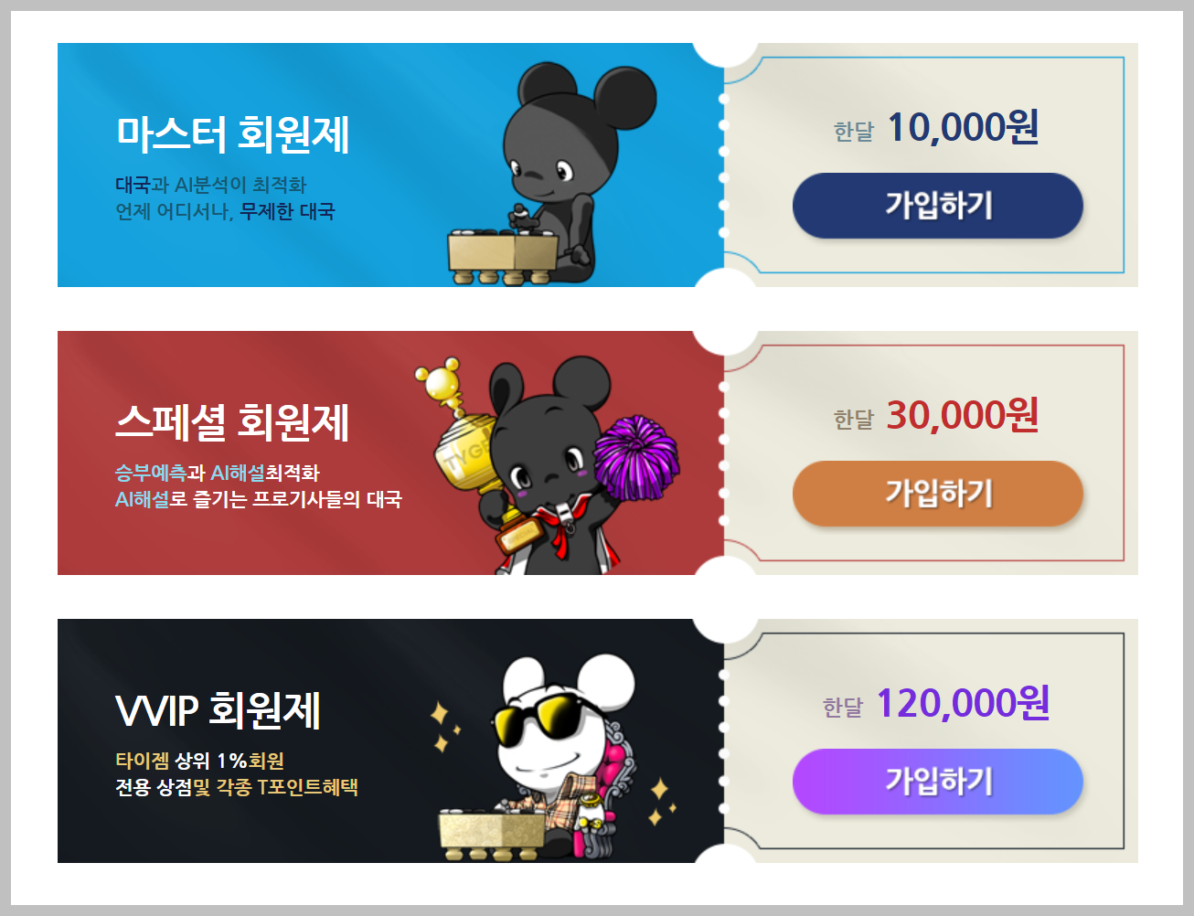 유료 회원으로 가입을 하는경우에는 형세분석, 자동대국, 기보감상, AI대국분석과 같은것들을 할 수 있습니다. 하지만 일반적인 바둑을 두는데 있어서 이런것을 필요가 없습니다. 하지만 상대방이 이런 무기를 들고 있는데, 자신만 안들고 있으면 속상하기 때문에 많은사람들이 가입을 하는것 같기도 하더라구요.