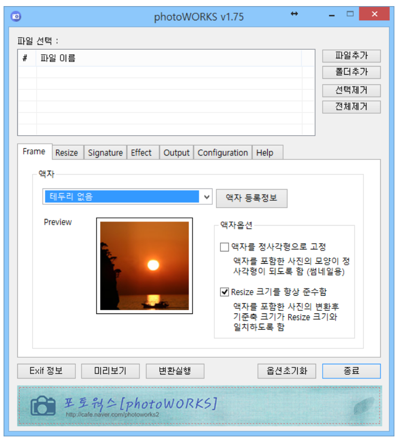 이 프로그램이 딱히 엄청나게 장점이 있는것은 아닙니다. 저는 그냥 아주 오래전 디카를 사용하던 시절부터그냥 이용했던 프로그램이기 때문입니다. 리사이즈를 해주고, 액자를 만들어주고, 샤픈을 자동으로 넣어주기에 쉽게 이용을 하고 있습니다. 익숙하고 잘 다룰수 있기 때문에 이 프로그램을 많이 이용합니다.