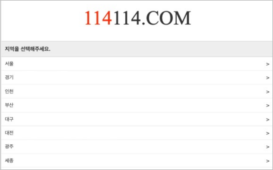 114114.com에 접속하면 첫 화면은 매우 간단한 모습으로 구성되어 있으며, 복잡한 절차 없이 바로 필요한 정보를 찾을 수 있는 점이 장점입니다.