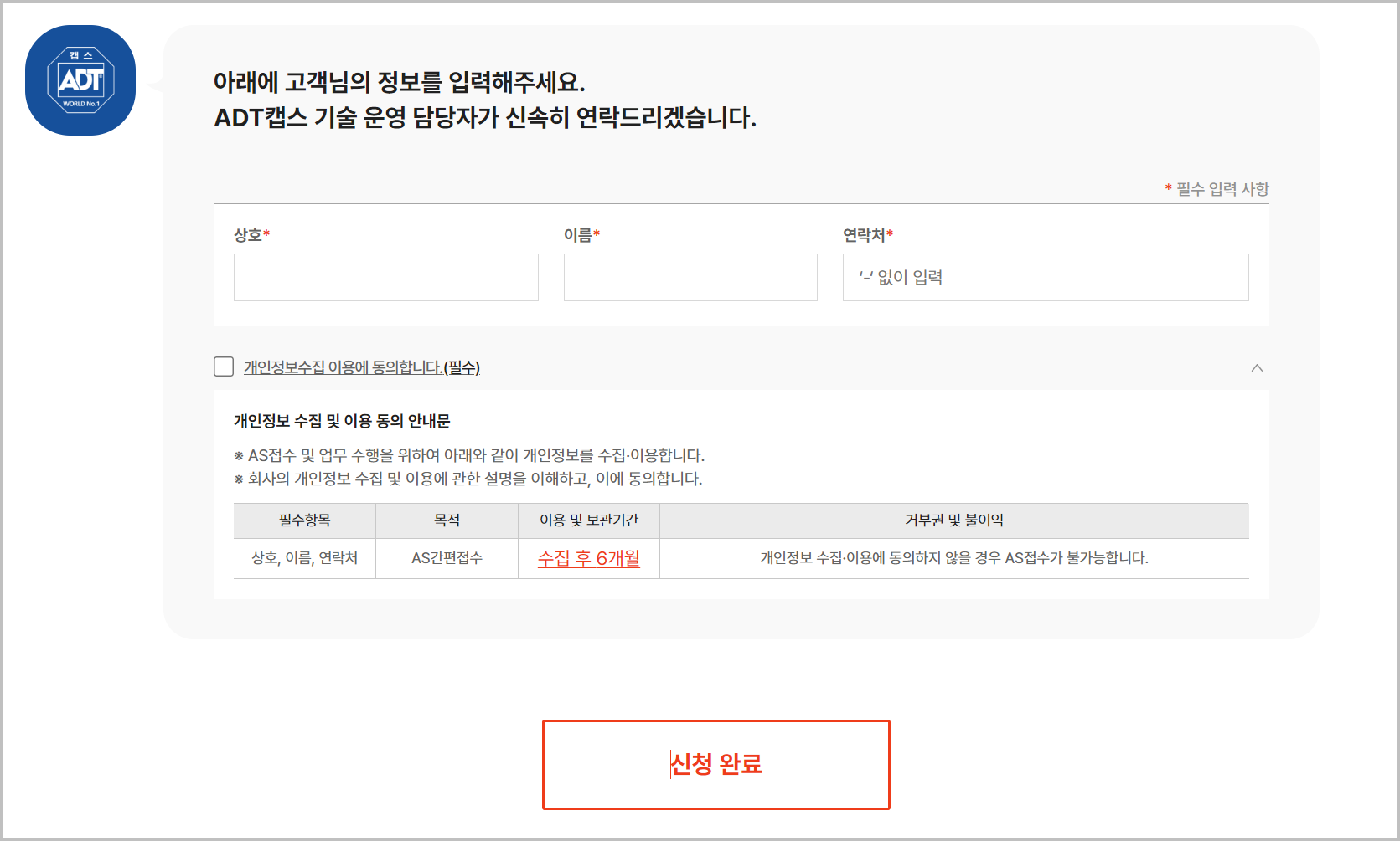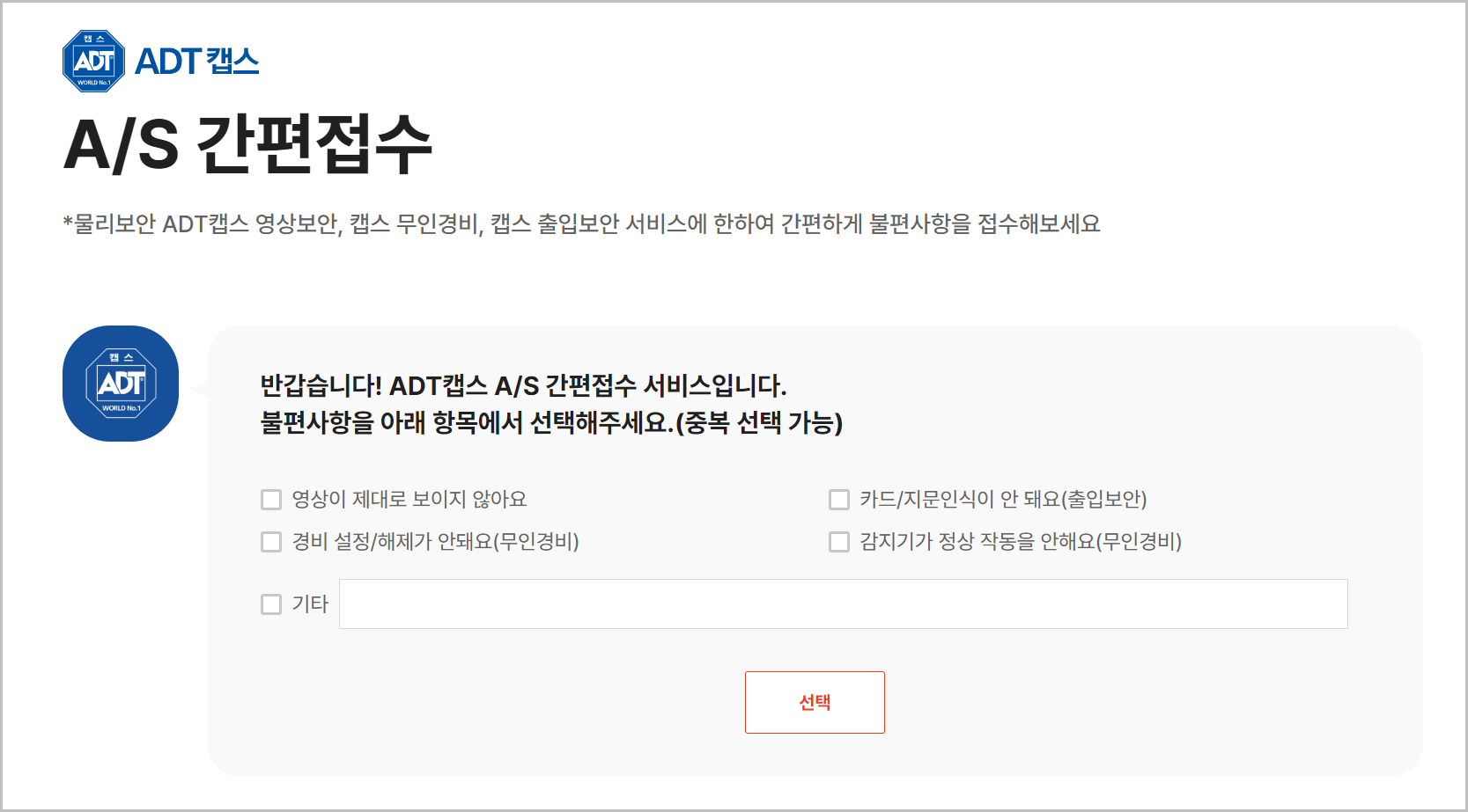 이러한 경우에는 간편하게 ADT캡스 고객센터 홈페이지에서 신고를 할 수 있습니다.