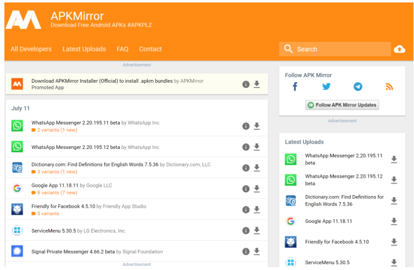play스토어 다운로드 하는 방법은 apkpure나 apk mirror와 같은 사이트에서 검색해서 다운로드를 하면 됩니다.