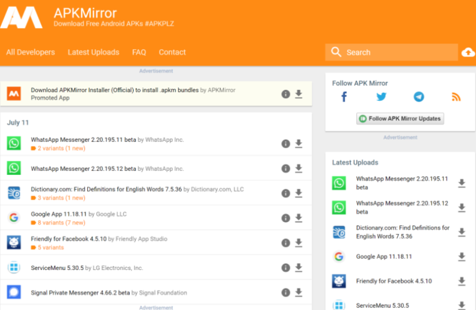 - 위 링크를 통해 APKPure나 APKMirror에 접속합니다.