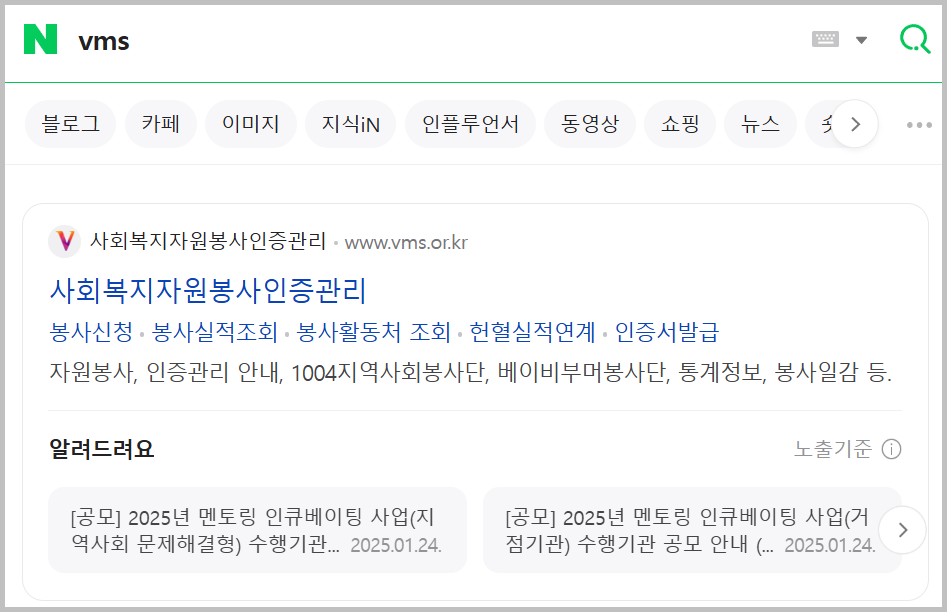 VMS를 이용하려면 먼저 공식 홈페이지에 접속해야 합니다. 포털 사이트(네이버, 다음 등)에서 ‘VMS’를 검색하면 사회복지 자원봉사 인증관리 사이트가 검색 결과로 나타납니다. 가장 상단에 표시되는 링크를 클릭하면 공식 홈페이지( https://www.vms.or.kr/ ) 이동할 수 있습니다.